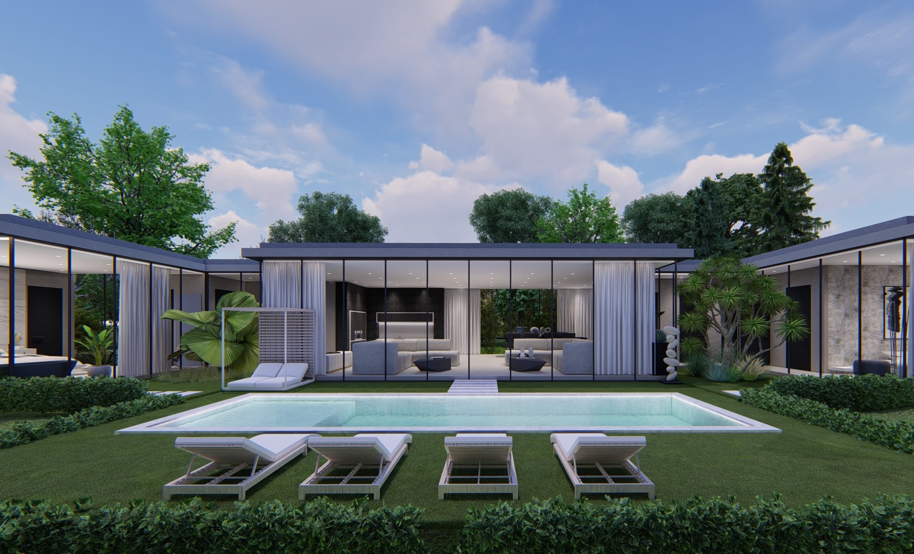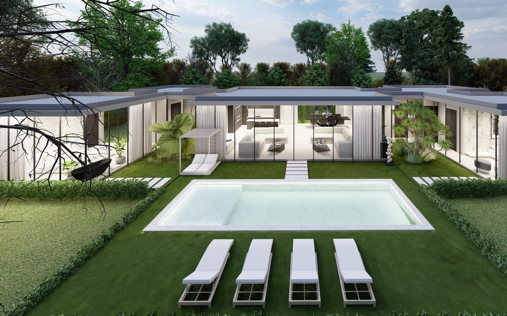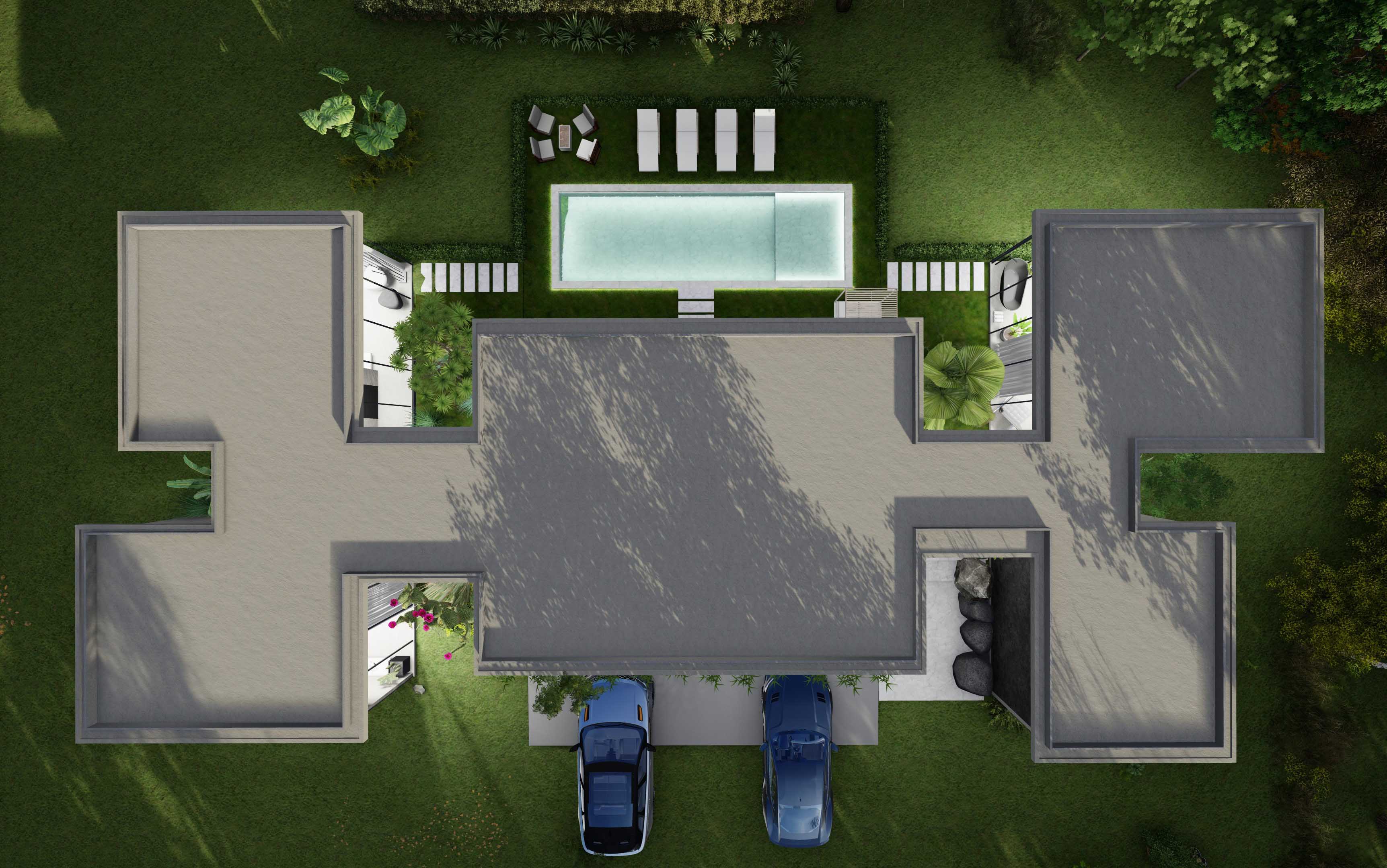 AÇIK YÜZME HAVUZU VE KULLANIŞLI BAHÇE DÜZENLEMESİ